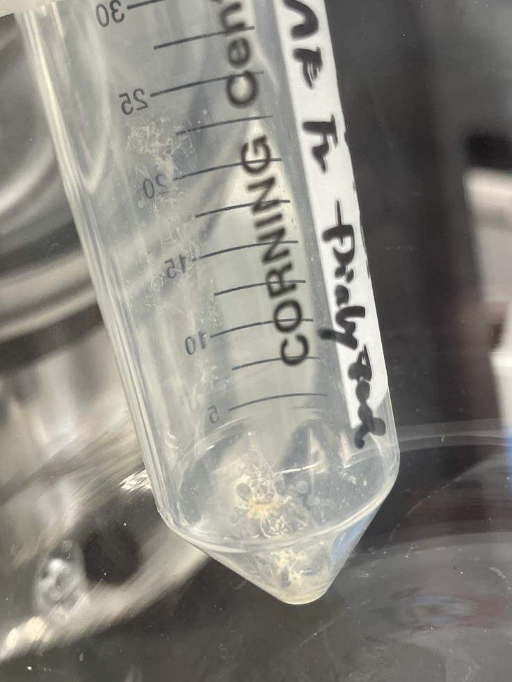 チューブの中に見えている色味がついたホコリみたいなものが抗がん活性を持っています。