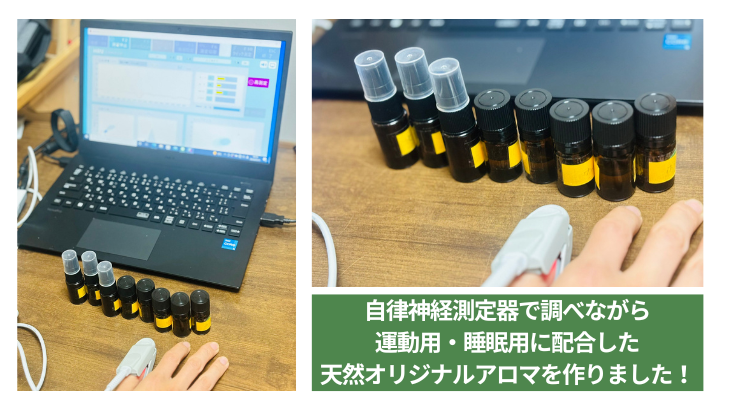 オリジナルアロマを作るにあたり、自律神経測定器を使い何種類ものアロマを実際に調べながら作りましたので、届くのを楽しみにしてもらえたら嬉しいです。
