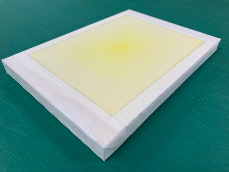 寺脇さんの作風でもありますが、コンピュータ上だけでなくアナログの質感を表現しています。ただ黄色を塗りたくったものではありません、そこには作者の意図があります。