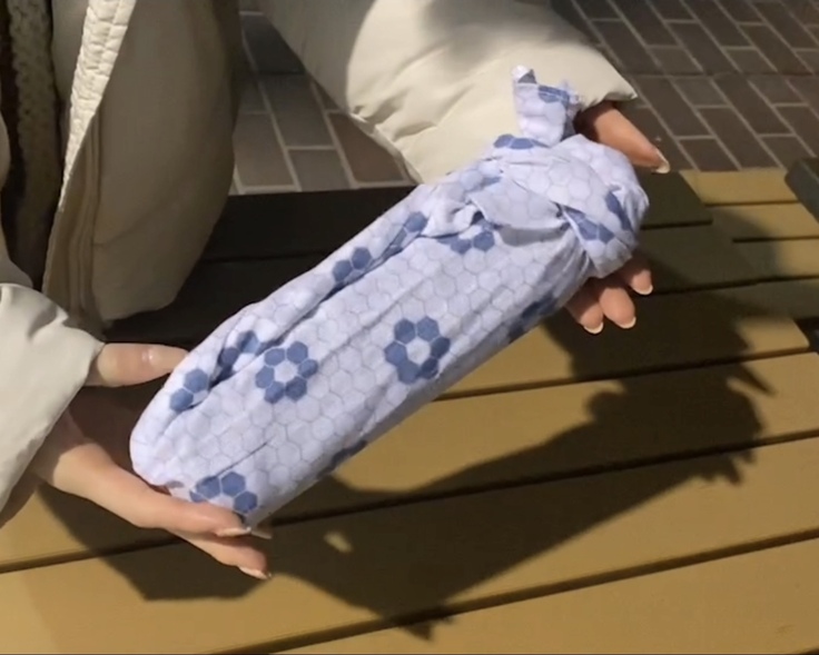その中でも手拭い紹介では、日本で古くから使用されている手拭いは端を縫わないきりっぱなしという特徴から乾きやすく清潔使えるということ。タイにある布やタオルで代用可能な手拭いの物を包んで運ぶ、ファッションとして、敷物の代わりになどの使い方などを紹介しました。