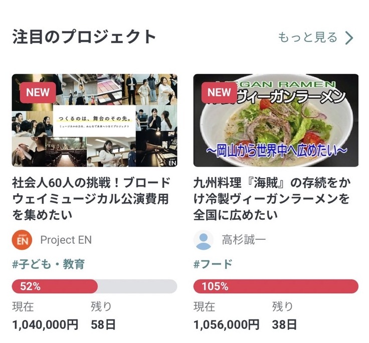 【初日で100万円達成】注目プロジェクトに掲載されました。