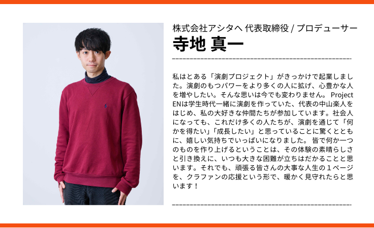 【応援メッセージ vol.7】株式会社アシタへ 代表取締役 / プロデューサー 寺地 真一さん