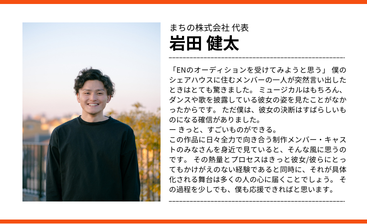 【応援メッセージ vol.9】まちの株式会社 代表 岩田 健太さん