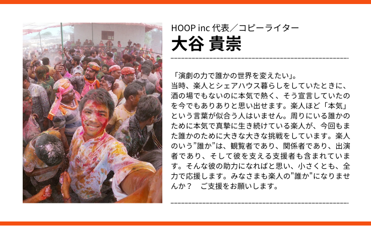 【応援メッセージ vol.16】HOOP inc 代表/コピーライター 大谷 貴崇 さん