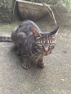 2年前に親猫が連れてきた2匹のうちの1匹です。残念ながら親猫はお腹が大きいまま姿を見せなくなりました。兄妹でうちに居つき手術の時期に先ずメスを済ませ、次にオス、と思ってた矢先いなくなりました。その後たまに顔を出してはいなくなり、の繰り返しです。最近は1ヶ月ほど顔を見せず、もう来ないかも・・・と思っていたらひょっこり現れました。手術予約日までいなくならないよう祈るばかりです。