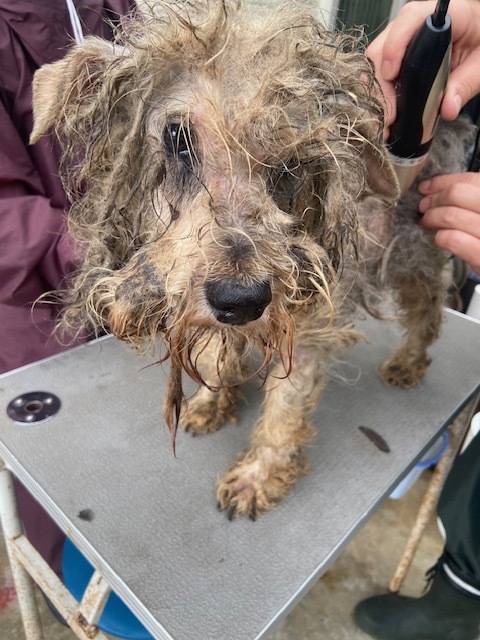 こちらの写真は、私たちが4月にブリーダー崩壊した所から保護したワンちゃんです↓
