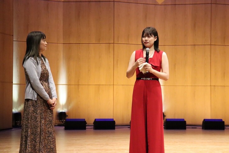 演奏後のインタビューでは、特級ファイナルのサントリーホール大ホールで演奏した時の気持ちや受賞の喜び、今後の音楽活動への抱負等を語っていただき、最後は沖縄のピアノを学ぶ子ども達へ「ピアノを好きな気持ちをずっと大切にして欲しい」と温かいエールを送り締めくくってくださいました。