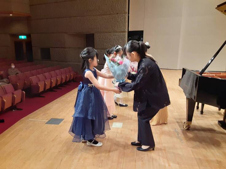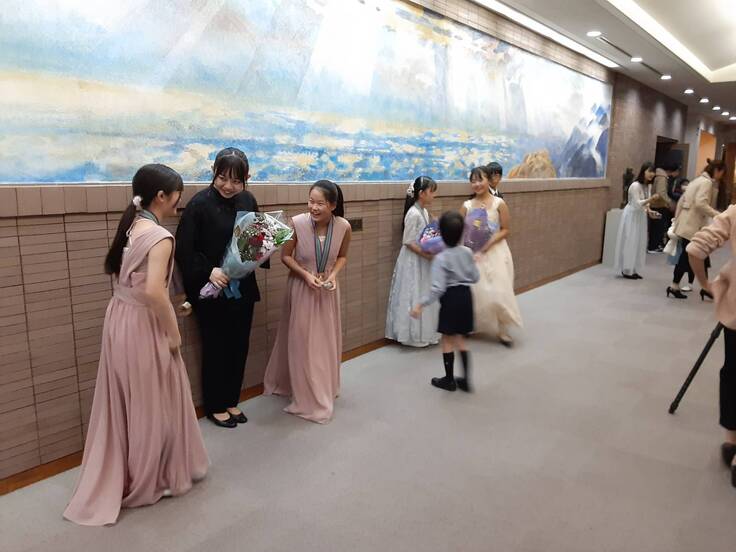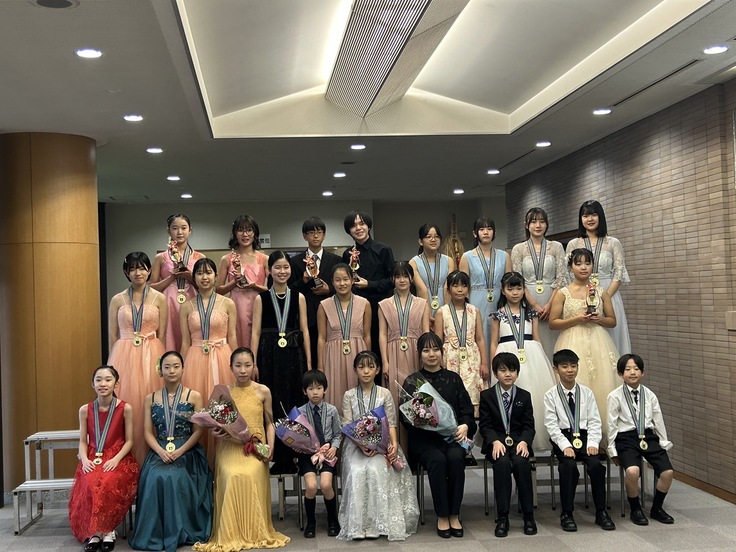 特級グランプリの鈴木愛美さんはじめ、E級金賞清水ここねさん、連弾初級B銅賞山田寛人さん・千代佳世さんペアの3組の皆さん、第1部、第2部両方演奏してくださり、出演者、聴きに来たお客様、支部の先生方、皆さんとても感動されていました。