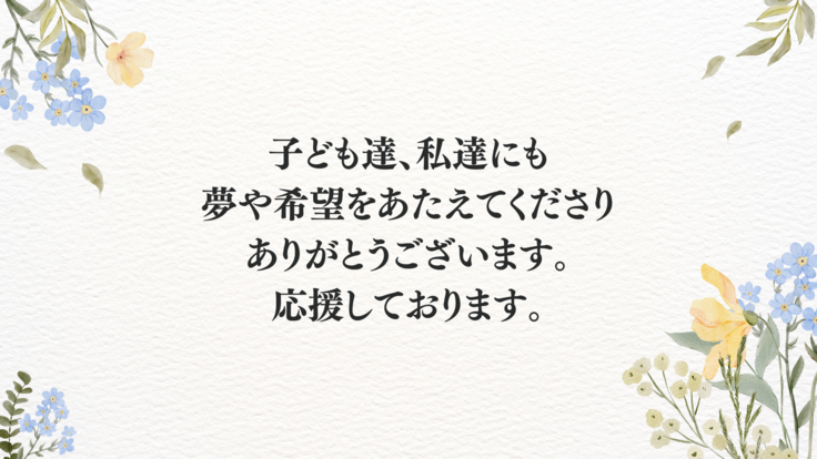 特級サポーターからファイナリストの今後の活動へエールを!激励の花束コース