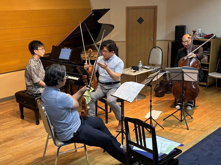 これに先立ち、7月12日・13日に今年の特級挑戦者たち向けに「特級 室内楽研修会」を開催しました。第一線で活躍する弦楽器奏者、松田拓之氏(ヴァイオリン)、光永雄高氏(ヴィオラ)、篠崎由紀氏(チェロ)を講師に迎え、特級出場者たちが本格的なアンサンブル指導を受けました。