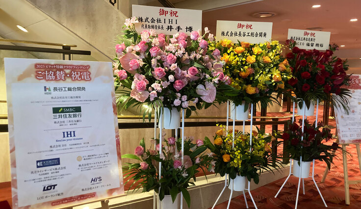 サントリーホールロビーは、クラウドファンディングにご支援いただいた企業の皆さまからのスタンド花が並び、お客様を華やかにお迎えすることができました。