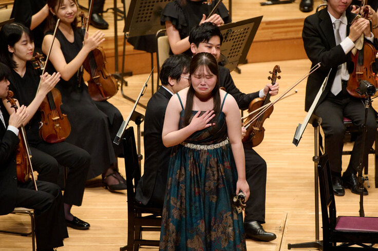 演奏が終わって割れんばかりの拍手の中、感無量の表情。
