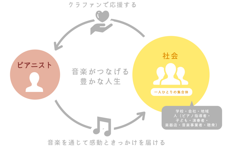 クラウドファンディングを通じてコンクールを応援することは、音楽業界への支援や、社会に音楽を届けていくことにつながります。それは、巡り巡ってあなたの元へも。