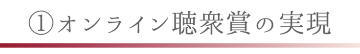 オンライン聴衆賞は、「愛されるピアニストを育てたい」という想いから誕生しました。演奏だけでなく、その人の立ち振る舞いや息遣い、醸し出す雰囲気なども人を引き付ける大切な要素です。まさに、ピアニストを丸ごと応援することがオンライン聴衆賞です。