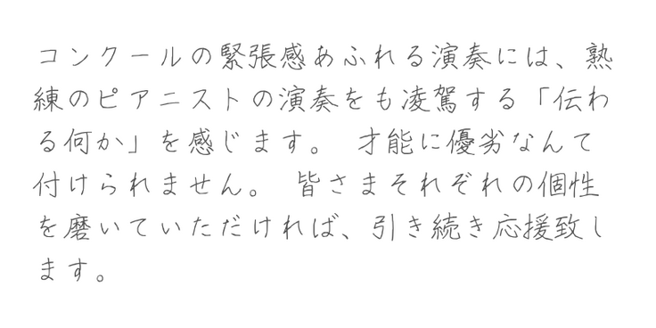 将来、「あの時ファイナルを会場で聴いていました」という次世代のファイナリストが育ちますよう願っております。