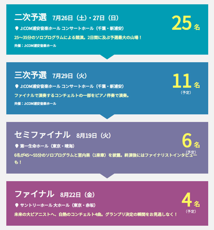 ピティナ特級は、予備予選・一次予選・二次予選・三次予選・セミファイナル・ファイナルと、各ラウンドにピアニストたちの想いの詰まったプログラムが展開されます。