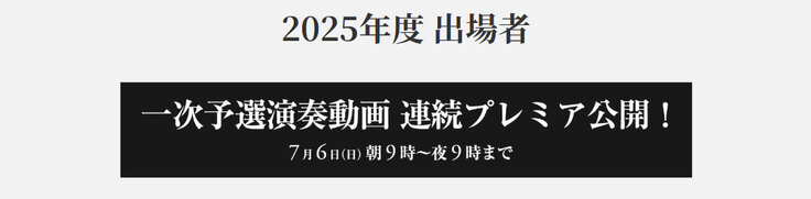 また、二次予選進出者の皆さまの一次予選・演奏動画を7月6日(土)朝8時よりYouTubeにてプレミア公開いたします。ぜひご覧ください!