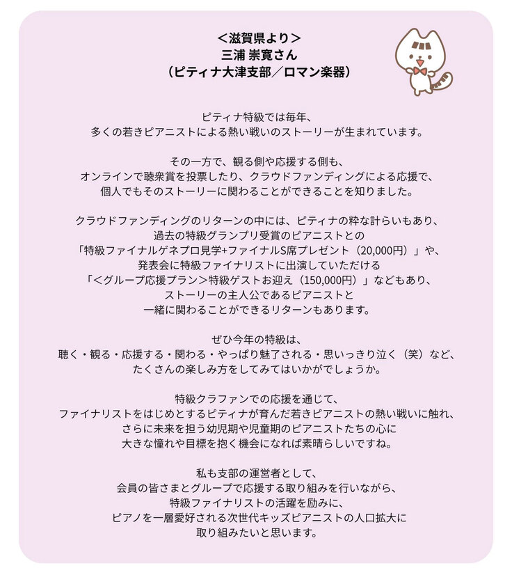 2025ピティナ特級クラウドファンディング・リターン一覧