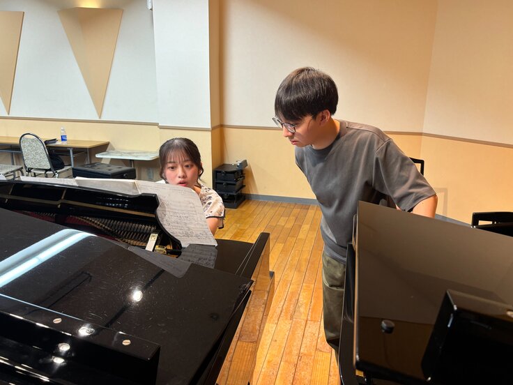 伴奏を担当してくださる先生方の安定したサポートのもと、コンテスタントたちは思い描く音楽をのびのびと表現できているようです。リラックスした雰囲気の中、テンポよく練習が進みました。