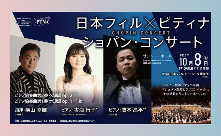 さて本日は、10月8日に企画されている注目の「日本フィル×ピティナ ショパン・コンサート」へのご招待リターンをご紹介いたします。