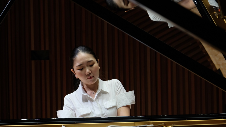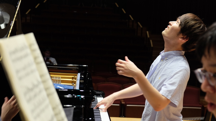 ファイナルで演奏予定のピアノコンチェルトを、ピアニストの伴奏で2台ピアノで披露しました。