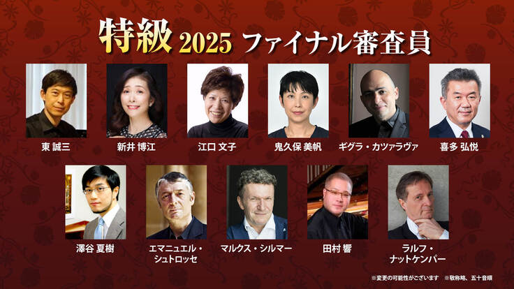 また、常に新しい審査員を招聘することで、新しい視点を取り入れています。コンテスタントへの光の当て方、ポテンシャルの見出だし方の角度は、多ければ多いほど良いはずです。特に特級ファイナルの審査員には、多角的な視点で、そのピアニストの技能だけでなく、ポテンシャルや人間性まで見据えていただけるような方、音楽業界の第一線で業界の「次の時代」のことを常に考えてきた方にお願いしたいという想いで、ご依頼しています。