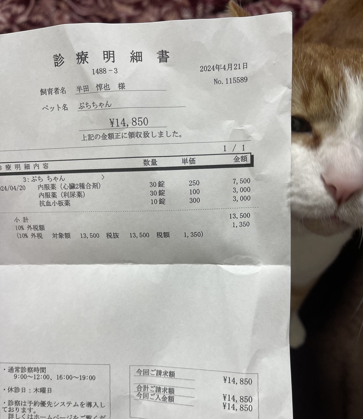 次回の定期検査5月の頭です。良い結果であることを望むばかりです。がんばれぷち。
