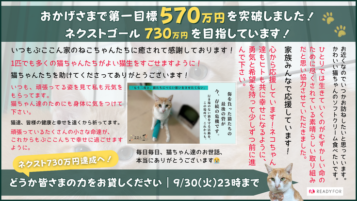 このプロジェクトを通して、改めて「ぷここん家」が、そして私たちが保護してきた猫たちが、こんなにも多くの方々に愛されているのだと実感しております。
