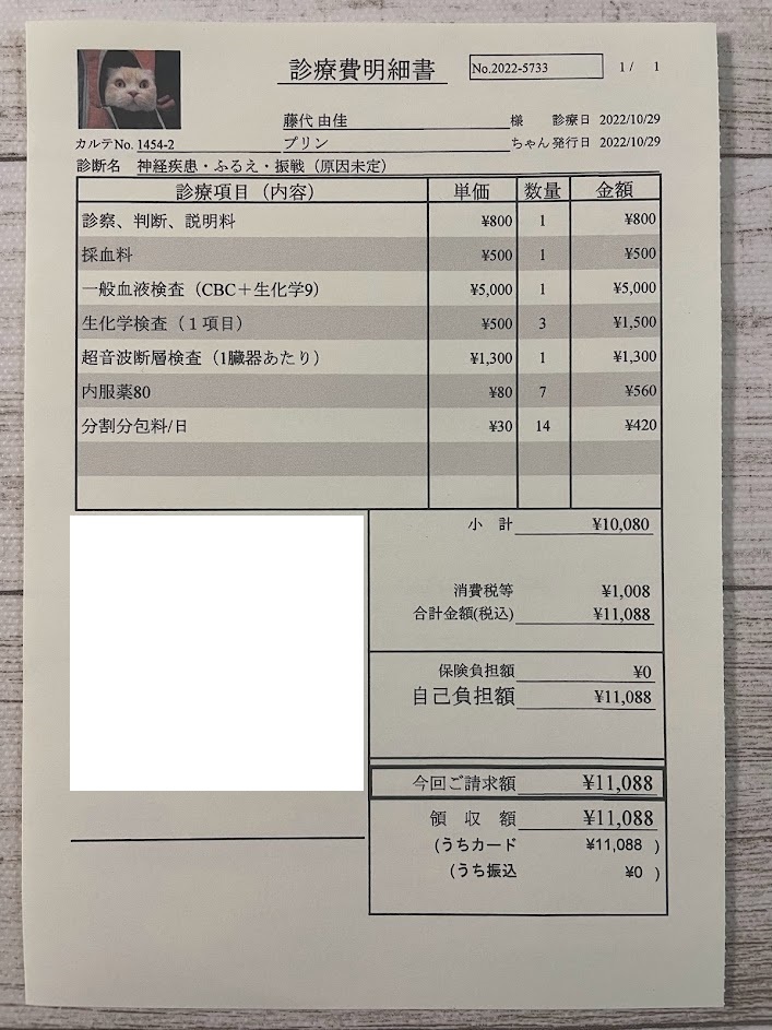 プリンを自宅に迎えた2021年9月から、約1年間は特に大きな異常も無く、相方のスイートと平穏無事で幸せな毎日を過ごしていました。2022年5月頃に一度だけ便に血が混じった事がありましたが、その時の検査では何も問題はありませんでした。2022年10月20日に”ふるえ”を発見してから、門脈シャントの診断までの経緯が以下になります。