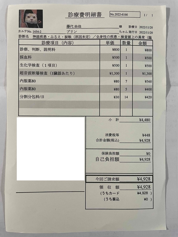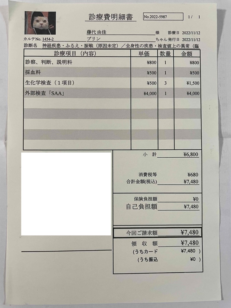 プリンの場合は、”ふるえ” がその症状として出ています。毒素が身体に廻って苦しんでいるのかと思うと、心が締め付けられるような気持ちになります。