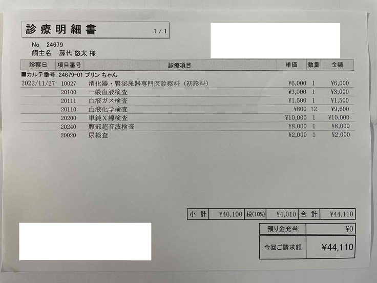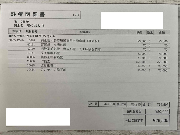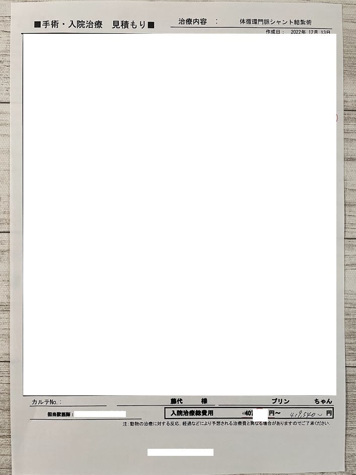 プリンの門脈シャント手術とそれに伴う入院の費用