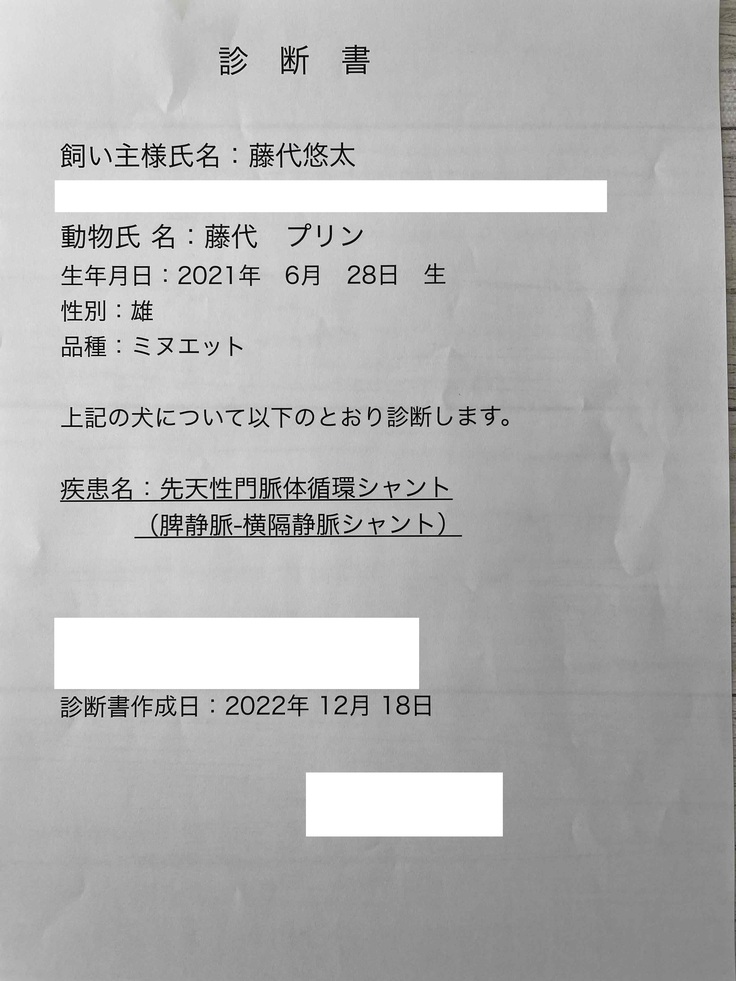 人間でいえば、まだ若干20歳相当のプリンが、難病である<先天性門脈体循環シャント>と診断されました。