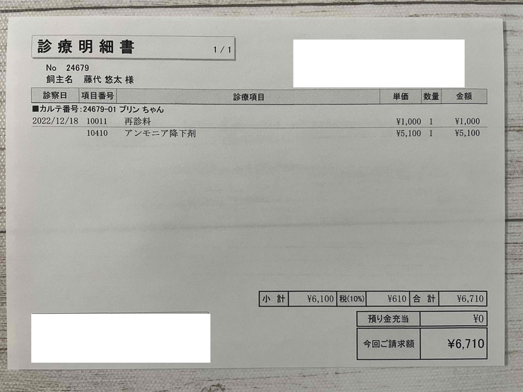 この日も、アンモニア降下剤を処方してもらい、餌も肝臓サポートのものに切替ました。