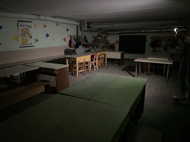 長引く戦闘と停電が続く中、毎日のように空襲警報を知らせるアラートがなり、その度に子どもたちは全てを中断し、地下シェルターに避難しなければなりません。