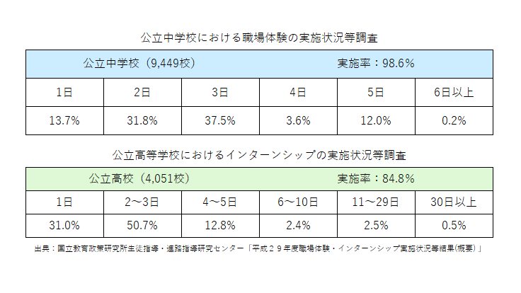 現在は国が推進するキャリア教育の一環として、中学校では「職業体験」、高校では「インターンシップ」として実際に企業に行って仕事体験をするようになっています。