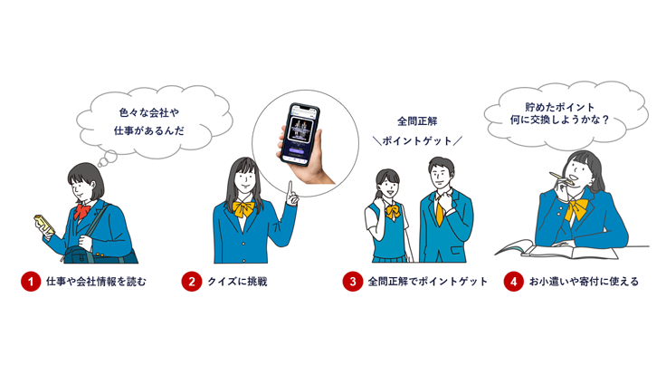 世の中にある様々な企業で働く人のインタビューを交えながら、なぜその仕事に就いたのか、その仕事の何が楽しくどこが大変なのか、また、どうすればその仕事に就くことができるのかというような情報を中高生に発信していきます。