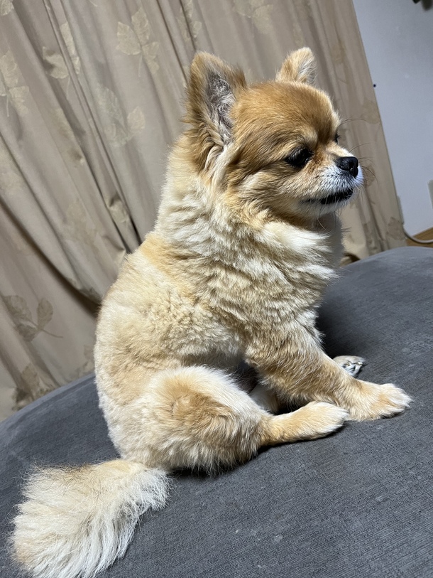 少しまだらに伸びてしまった毛をハサミでカットしました。