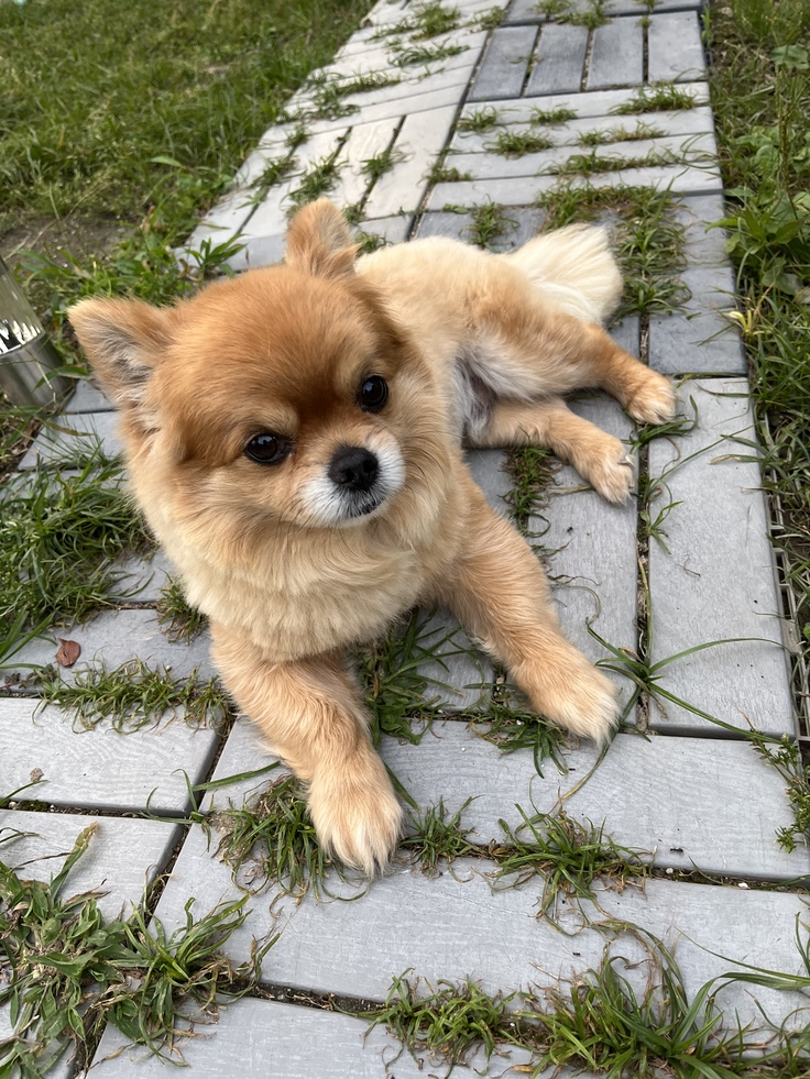 くーちゃん、今日はギリ明るい時間帯にお庭に出れました。