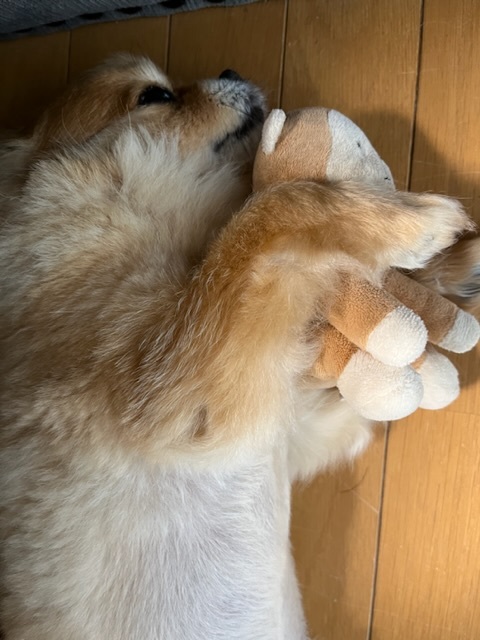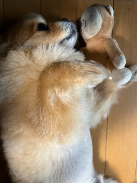 お庭にも行けないし、家でずっとゴロゴロしてます。