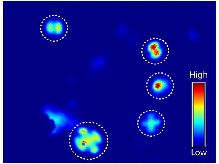 図4:FEMを用いた分子像観察の例。色のマップは実際に見える色マップと変えてあります。