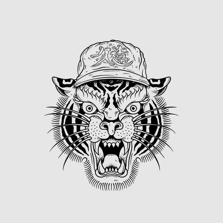 正面からの虎の絵は八方虎といわれ、どの方向から見ても目が合う様から、災害や魔除けとされる。BARTHWORKSの世界観で描かれた迫力ある虎が目を見張らせる。