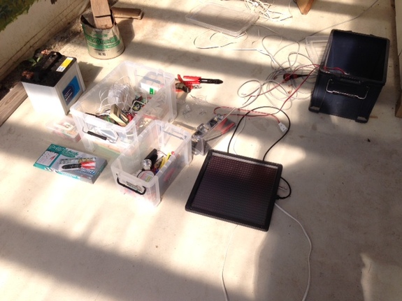 (チーム東松山さんが持ってこられたバッテリーを使い、トイレの独立電源照明を復活させました。今回はちょっとだけお手伝いをしました。)