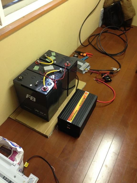 太陽光蓄電の電気を再生リユースバッテリーに蓄電します。