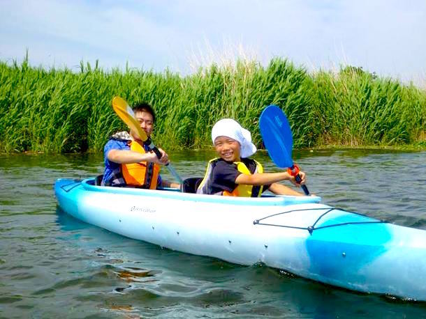 数ある川遊びの中でもカヌー体験を選んだのは、カヌーは2人で漕げるタイプのものがあり、親子や兄弟、友達と乗ることが出来るからです。力を合わせて行動することによって、協力するということが体験できます。協力して成し遂げると、子どもの自信にもつながり、自然と笑顔に繋がっていきます。