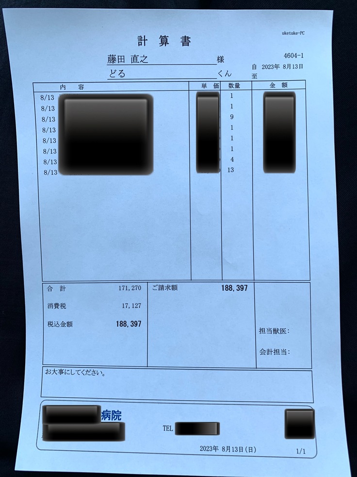 今回も病院に明細部分の開示の許可を頂けないかお話ししてきましたが、許可が出ずこのような形でしかご報告が出来ませんでした。