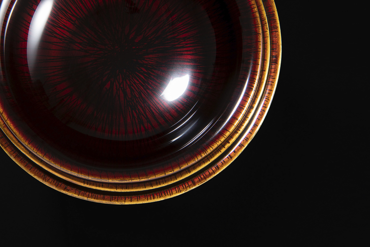 輪島塗の売上は、ライフスタイルの変化から年々減少していますが、輪島六職と呼ばれる分業制の産地にあって下地から上塗りまでの修行を修め、工程ごとにオリジナルの技法を取り入れて開発した「練乾漆」と「KOKEMUSU」2つの商標を登録し商品化しています。