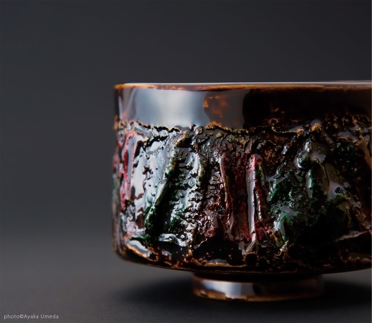 この技法をアレンジしてKOKEMUSUという抹茶椀を制作しました。