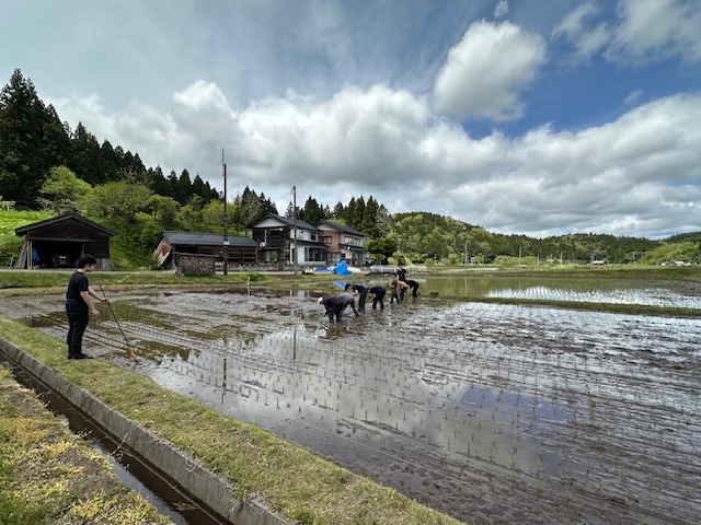 ひとつは輪島塗保存会の伝承者養成事業への参加です。週2回下地の先生のもとへ通い、より高度な輪島塗技法を学んでいます。輪島塗技術保存会が制作した 輪島塗大型地球儀「夜の地球Earth at Night」は大阪関西万博に展示中です。もう一つは工房前の田んぼ再生です。5月11日にはボランティアさんにもお手伝いを頂き田植えを行いました。大きく育って中干し中の青々とした田んぼを眺めていると気持ちがいいです。ご来房頂いたお客様にも世界農業遺産「能登の里山」を堪能してもらえるように継続していきたいと思っています。元の風景がどれほど素晴らしかったのか無くしてみて感じています。