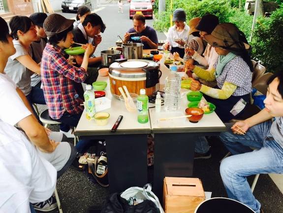 雑談が進む中、そのままランチタイムへ移行。今回はスノードロップさん提供の絶品お昼ご飯です。古代米を混ぜたご飯に、大根と蒟蒻の味噌田楽、挽肉じゃがには大葉を散らし、その場で和えた甘夏の酸味が実に爽やかな酢の物と、夏野菜と茸の汁物で、午後に向けてエネルギーをチャージしました。私たち、学生は、たくさんお代わりを頂き、お腹いっぱい!…でした。