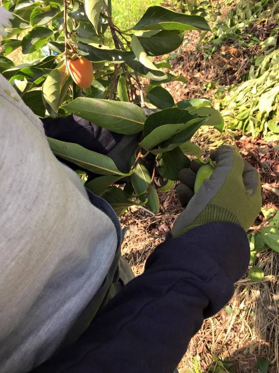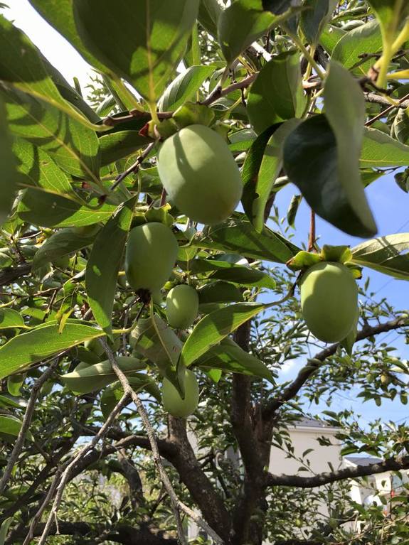 午前中は新田の畑に渋柿を取りに行きます。カゴと段ボールを柿の木の下に置き、もぎとり、カゴに投げ入れる…気がつけばカゴ3つ分ほどになりました。